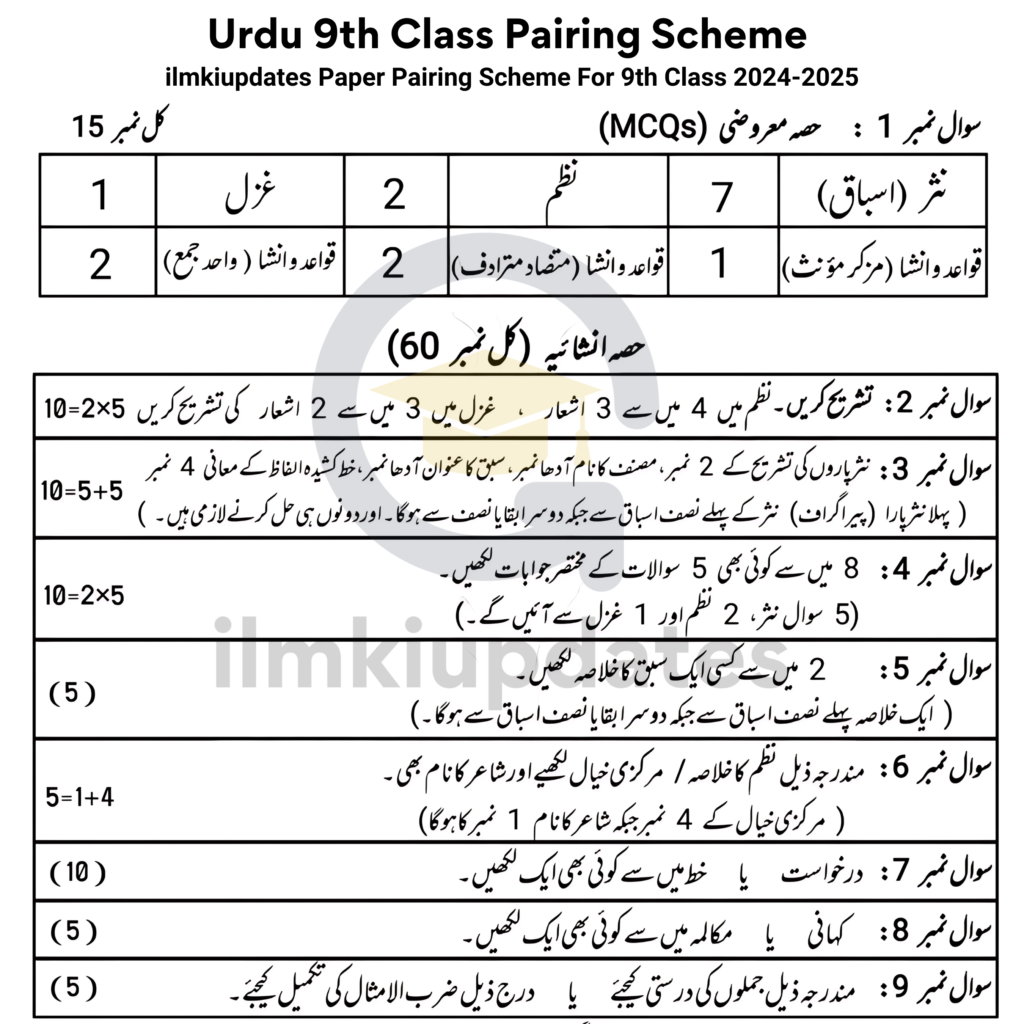 Key Features of the 9th Class Paper Pairing Scheme urdu Punjab Board 2025